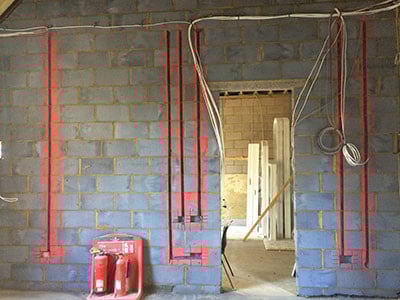 Chasing in concrete work refers to the precise process of creating channels or grooves within concrete surfaces to accommodate electrical wiring, conduits, or cables.